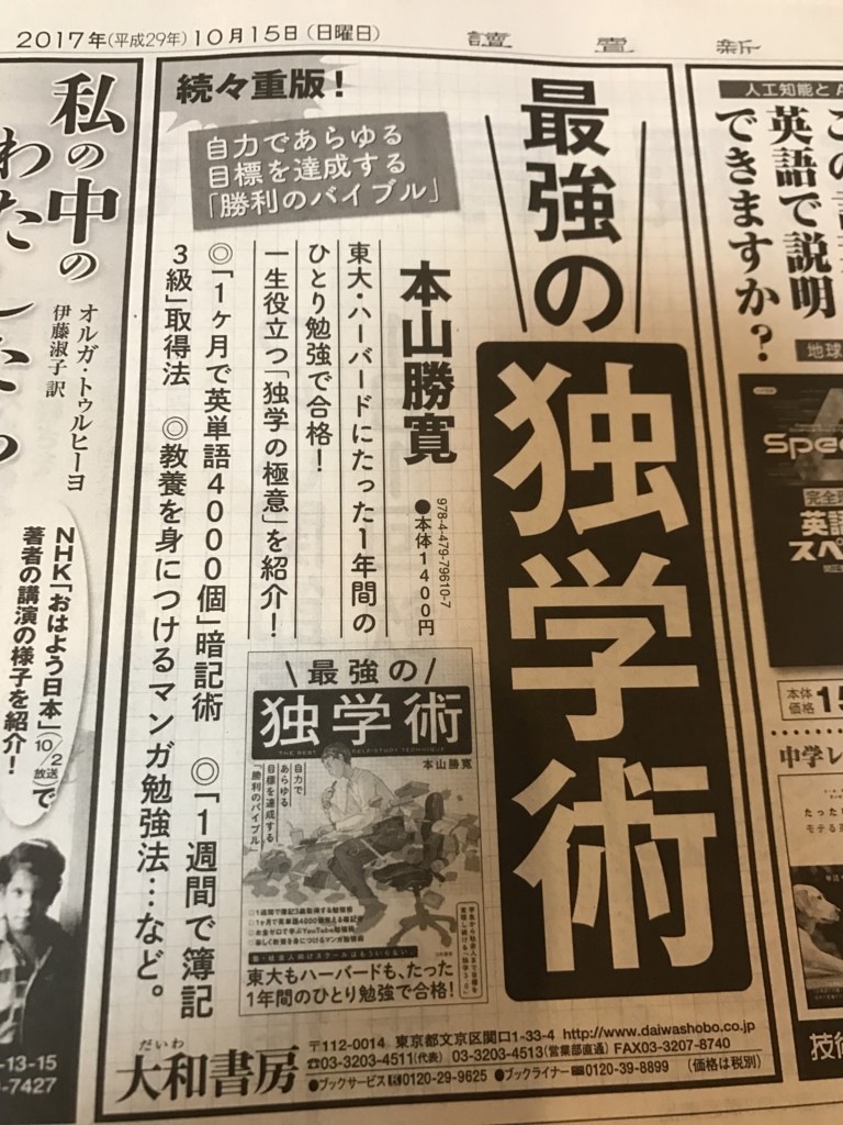 読売新聞本日朝刊に『最強の独学術』の広告が掲載されました!